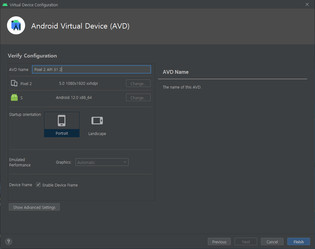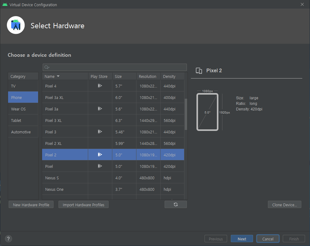 밑에 순서대로 진행하세요 Pixel2 선택- S 버전 선택